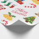 Iconos y decoraciones de Navidades blancos con papel de envoltura de Feliz Navidad. Este diseño de envoltura de regalo incluye Santa, regalos, renos, árbol de Navidad, medias, dulces, panecillos y campanas de Navidades. Puede editar para cambiar el fondo del blanco a cualquier otro color si lo desea.