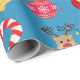 Iconos y decoraciones de Navidades azules con papel envolvente de Feliz Navidad. Este diseño de envoltura de regalo incluye Santa, regalos, renos, árbol de Navidad, medias, dulces, panecillos y campanas de Navidades. Puede editar para cambiar el fondo del azul a cualquier otro color si lo desea.