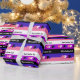 Papel envuelto con la bandera del orgullo de la fluidez de género con pequeños corazones en el centro del diseño. Bandera rosa, blanca, magenta, negra y púrpura del movimiento del orgullo de la genderfluididad; con un campo de texto editable para tu nombre o mensaje