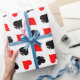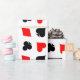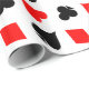 Juego de cartas de juego de póquer envolviendo papel. Diseño de patrones divertidos con corazones, diamantes, palos y espadas. Colores de juego de cartas en blanco y rojo negro. Idea de regalo para regalos de boda de Las Vegas. También es genial para jugadores de bridge y jack negros.
