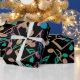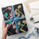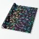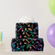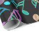La música grande observa el papel de embalaje 4. Las notas musicales coloridas, con las sombras de verde, azul, púrpura, del oro y del rosa, se salpican a través de un fondo negro. Perfeccione para envolver un regalo para su músico o amante de la música preferido.