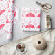 Elegante ducha de bebé o papel de envoltura de ducha de novia hecho en blanco, con un gran patrón rosa de gotas de lluvia y grandes paraguas rosas. Personalice el texto en blanco para su evento de ducha.