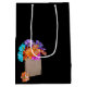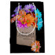 Colorido ramo de margarita en un saco de papel marrón sobre negro para la abuela. El texto de la bolsa puede ser editado.