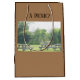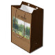 Una foto de mesas de picnic y las palabras "A Picnic" en el formulario y un marco decorativo y palabras Just For Me en la parte de atrás. El fondo es marrón claro y los lados marrones en la bolsa de la comida. Perfecto para excursiones de camping y almuerzos de oficina o escolares. Es un gran comienzo de conversación para cualquiera.