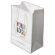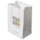 A veces sólo necesitas unas cuantas bolsas de compras impresas para personalizados, especialmente si eres un pequeño negocio, así que aquí hay una buena manera de conseguir lo que necesitas en el color y diseño que quieres. Personalice fácilmente esta bolsa de compra con el logotipo de su propia empresa y la dirección del sitio web. Disponible en acabado mate o brillante en tamaños pequeños, medianos y grandes. También hay una bolsa de vino. Hecho por Digiwrap. No hay cantidad mínima de pedido ni cargo de instalación. Consejo de diseño: Puede borrar el texto para dejarlo en blanco si prefiere personalizar su bolso con sólo su logotipo.
