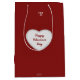 El bolso de papel es un tono rojo vibrante que simboliza el amor y la pasión. En la parte delantera, un diseño en forma de corazón, con estampados delicados, aporta un toque de romanticismo. Dentro del corazón, las palabras "Feliz Día de San Valentín" están bellamente escritas en elegantes letras cursivas. El bolso es perfecto para regalar, con una sensación suave y amorosa que refleja la calidez y el afecto de la ocasión.