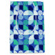 Un giro geométrico moderno en una impronta no religiosa con copos de nieve clásicos sobre un fondo azul.