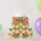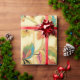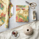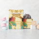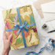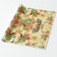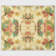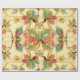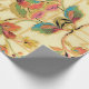 Papel de embalaje elegante y colorido del modelo del papel pintado del vintage con una turquesa pasada de moda y estampado de flores tropical anaranjado contra un oro y un fondo beige.