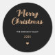 Eleva tu paquete de vacaciones con este moderno pegatina negro y dorado de la ronda navideña. Perfecto para regalos, tarjetas y decoración festiva. Elegante, elegante y atemporal.