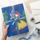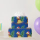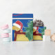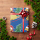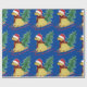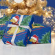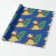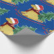 Festividad de Goldendoodle Riding Sled Bringing Home The Christmas Tree - Cute dorado doodle amante vacaciones envolver papel fondo azul!
