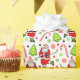 Navidades de hockey creativos envueltos de regalo de vacaciones con un jugador de hockey sobre hielo de Santa, rodeado de Navidades de caramelos, galletas y pollos de hockey.
