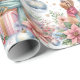 Este envolvimiento de primera categoría incluye adorables cachorros con suaves bufandas pastel, colocados en medio de poinsettias y brillantes luces de hadas.