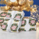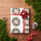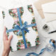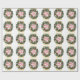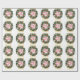 Este elegante papel de envoltura presenta una lujosa corona de Navidades en una moderna banda dorada y un fondo blanco con estrellas pequeñas. La corona está decorada con cañas de pino, azulejos blancos, rojos y azules, estrellas doradas y copos de nieve. Decoración muy feliz con el texto Feliz Navidad y el nombre del remitente al personalizar. Feliz Navidad!