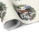 ¡Este divertido papel de envoltura es genial para cualquier amante de la moto! Este periódico de vacaciones muestra una motocicleta dentro de una corona con regalos, en un fondo de copo de nieve! ¡Papel divertido para la familia y amigos!