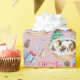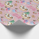 Envuelve tus regalos de vacaciones en este adorable papel de envoltura de cachorros. Un suave fondo rosa con un adorable cachorro dormido en una cesta y varios elementos de vacaciones por todas partes.