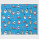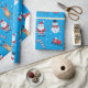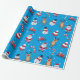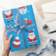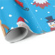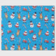 Celebre la temporada de vacaciones con estilo con este papel de envoltura festivo con un diseño divertido y vibrante. El fondo es de un color azul cielo, adornado con hombres de nieve usando gorras negros y pañuelos rojos, junto con alegres Santa Clauses en sus icónicos trajes. También se incluyen renos alegres, árboles navideños decorados en rojo y blanco, latas de dulces, regalos, trineos y copos de nieve dispersos por todas partes. Este agradable estilo crea el ambiente perfecto para los regalos durante las vacaciones. Ideal para envolver regalos y añadir un toque festivo a cualquier ocasión.