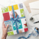 Personaliza tu regalo de este año con papel de envoltura de fotos que incluye a tu familia como parte del diseño. Cree un collage de copos de nieve, deseos de vacaciones y fotos familiares en este collage. Los bloques de colores festivos y divertidos de rojo, verde, verde azulado y amarillo se entremezclan con fotos de ti, de tu hijo, de tus mascotas, de lo que quieras!