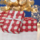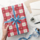 Papel de envoltura de Navidades clásicos con un patrón de gingham rojo con acentos de copo de nieve. Perfecto para los amantes del campo, estilo primitivo.