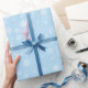 Este papel de envoltura de Navidades se muestra con un color de fondo azul hielo con un diseño de impresión de copos de nieve de invierno.