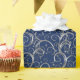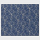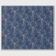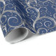Papel de envolver regalo de vacaciones mostrado con un elegante bonito de remolinos de color plateado impreso en un color de fondo azul profundo. Elige tu color de fondo.