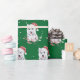 Perro Husky con Navidades de Santa Claus gorra sobre fondo verde y copos de nieve. Se puede cambiar el color de fondo.
