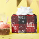 Texto de NOEL blanco con copos de nieve sobre fondo rojo y negro de búfalo trenzado. El texto y el color se pueden editar.