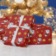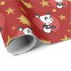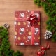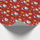 Navidades envolviendo papel con ilustracion de panda lindo con el gorra de Santa, diseño de vacaciones para Navidades para niños, en un fondo con un patrón amarillo sin costura con estrellas, ilustrado por Radka Kavalcova