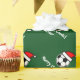 Navidades Papel de envoltura de balón de fútbol para niños. Diseño de vacaciones para jugadores de fútbol, entrenadores y aficionados. Divertidos rollos de envoltura de regalo de Navidad para hombres, mujeres y niños (niños y chicas). Personalizable con nombre personalizado y saludo de temporada como Feliz Navidad. Colores verdes y rojos. El color de fondo es el personalizable. Fútbol deportivo con el gorra de Santa Claus. Tipografía caprichosa. Disponible como mate y brillante. Suministros de envoltura de regalo personalizados.