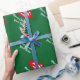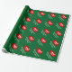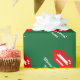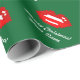 Papel de envoltura de Besos de Feliz Navidad personalizado. Diseño de vacaciones con labios rojos de 8 bits de arte píxel. Gracioso envoltorio de regalo de Navidad para hombres, mujeres y niños (niños y chicas). Personalizable con nombre personalizado y saludo. Colores verdes y rojos. El color de fondo es el personalizable.
