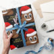 Navidades alegres/navidades de la emoji Santa poo emoji con sombrero rojo de Papá Noel sobre Navidades de fondo negro envolviendo papel.