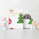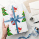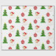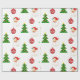 Este artículo de Navidad retro-diseñado presenta a Santa Claus, un árbol de Navidad, y un patrón de adorno sobre un fondo blanco. Un clásico papel Navidad que se coordinará con un tema de decoración de vacaciones rojo y verde. Utilice este papel Navidad para envolver su regalo o para sus artículos y manualidades fiestas.