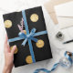 Negro del papel de embalaje del modelo de lunares del Relieve metalizado dorado