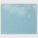 Nieve flakes flotando en un papel azul envuelto en el cielo.