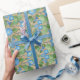 Un rollo de bonito Giftwrap, con un patrón nostálgico de Flores de Gloria Azul brillante en un fondo de Taupe . Parte de la colección "Morning Glory" de Posh & Painterly.