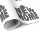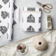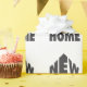 Un diseño gráfico de una forma de la casa con el nuevo hogar de las palabras, gran diseño para envolver un regalo que se calienta de la casa