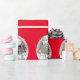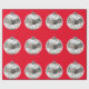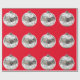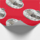 Regalo Ornamentos plateados sobre papel de envolver rojo