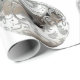 Regalo Ornamentos plateados sobre papel de envolvimiento