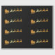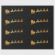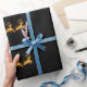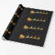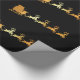 Papel de embalaje de lujo con falso Santa de oro grande en su trineo con el reno en un fondo negro. Papel de embalaje distinguido para el navidad.