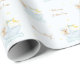 El respetable papel de envoltura de regalo personalizado incluye un lindo ilustracion de un oso bebé marrón dentro de un bote de papel azul y puede ser personalizado para duchas de bebé, cumpleaños de niños, etc