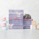 Paloma blanca adornada con alegría en una cuerda sobre un patrón de madera de grano morado