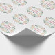 Este elegante y elegante Navidad envuelve papel con una colorida corona con hojas verdes y doradas y bayas rojas, así como tipografía de guiones con el mensaje "Feliz Navidad" en un fondo blanco.