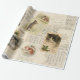 Por el amante del gato en tu vida. Las antiguas postales francesas con mensajes escritos a mano y adornadas con gatos y gatitos cubren este papel de tejido. Gatos y gatitos con una cinta y una campana, trepando una pared y mirando hacia abajo un ratón seguramente traerán una sonrisa. También incluye acentos holly - ideal para las vacaciones.