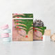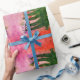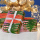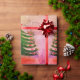 Felices vacaciones de invierno envueltos especiales de regalo con árbol de vacaciones color verde agua con corazones.