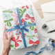 Navidades de moda inclinan papel envolvente en colores verdes, rojos, azules y rosas.