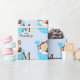 Envoltura de regalo para bebé de mono "M es para el mono", de color marrón y azul bebé. Este envoltorio de regalo de la ducha de bebé de mono azul y marrón dulce se puede personalizar con tu texto en el estilo de letra y color de tu elección.