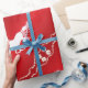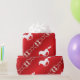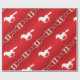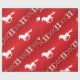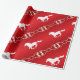 Ecuestre rubio y rubio - Papel envuelto - Rojo con copos de nieve de nevado blanco y caballo en marcha