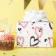 El papel de envoltura estaba adornado con corazones vibrantes, dibujados a mano en tonos rojos, rosas y negros, colocados sobre un fondo blanco suave. Los corazones rojos simbolizaron la pasión y el amor profundo, los corazones rosados representaron afecto y ternura suaves, y los corazones negros añadieron un toque de elegancia y misterio. Cada corazón era único, igual que las relaciones que simbolizaban.