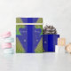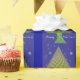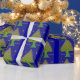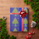 Papel de envolver de árboles de Navidad en azul y verde, muy diseño de bonito para tus regalos especiales de vacaciones.