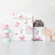 Diseño femenino de corazones, arcos de bonito, cerezas y perlas de gingham.