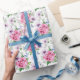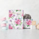 Papel envuelto que se muestra con una bonita flor rosa. Personalizar este artículo o compra tal cual. Imprimir material freepik.com